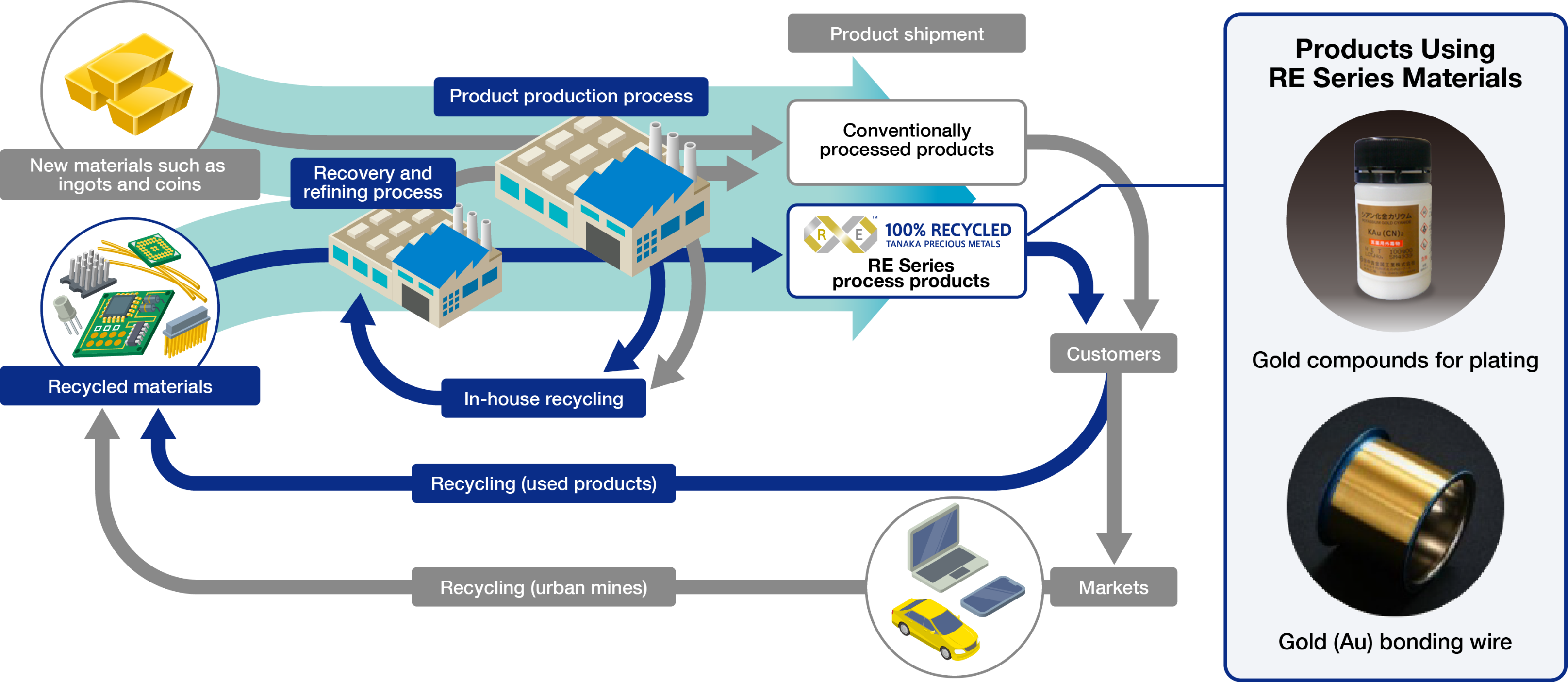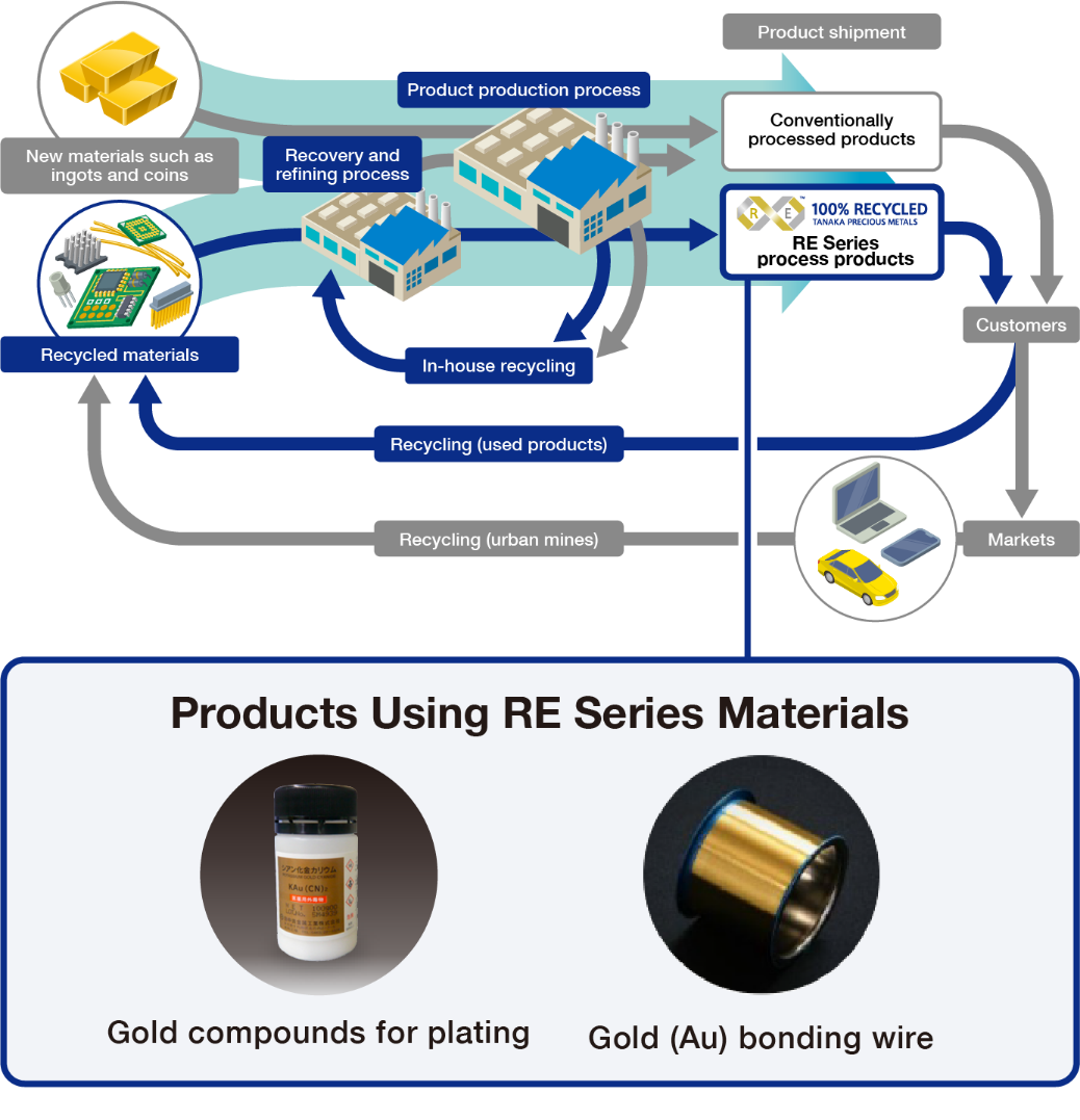 TANAKA is contributing to the development of a recycling-based society through the provision of products that use the RE Series.