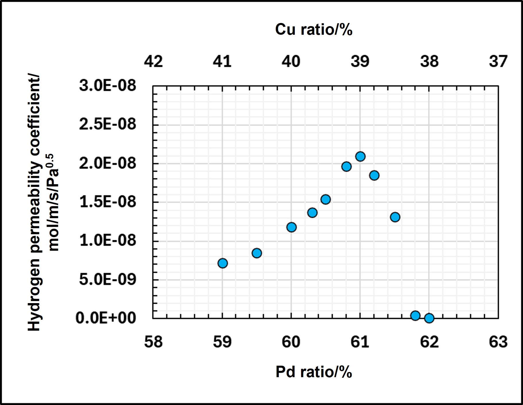 Pd/Cu Ratio in PdCu Alloys and Hydrogen Permeability Performance @ 300℃