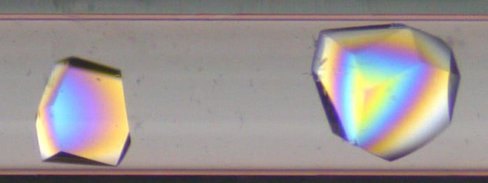 Bottom) Magnified view of protein crystals taken using polarizing microscope