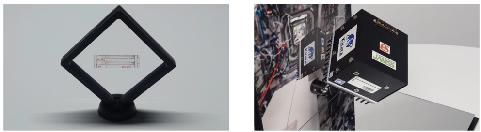 Figure 4: Left) The experimental unit used in the ISS Right) Replica of the Kirara device