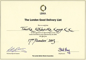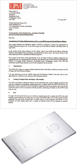 In June 2009, the LPPM posted its Good Delivery Rules on its website and launched a re-accreditation system (referred to as “Proactive Monitoring (PAM)”, to follow the same system as LBMA which had been introduced for gold and silver in 2004) for platinum and palladium. As a Good Delivery Referee, TANAKA’s mission is growing in scale.