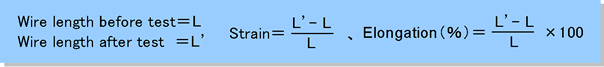 Young’s modulus (Elastic modulus) E is measured according to obey Hooke’s law. If Y axis is tensile load, X axis is elongation in tensile tests; this can be experimentally determined from the slope (L1) of initial liner created during tensile test. Generally, Young’s modulus of gold bonding wire is about 88GPa.