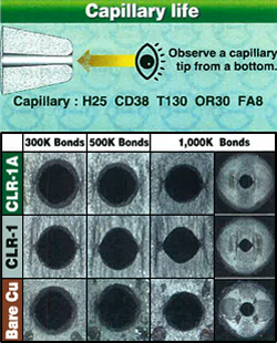 In addition, M Inc. discovered that heat and wear on the capillary tips due to vibration were one reason behind the diminishing quality observed. After consulting with engineers from TANAKA ELECTRONICS Co., Ltd., M. Inc. not only successfully improved the lifespan of the capillaries by 75% while maintaining their quality, they also reduced the labor involved in exchanging capillaries as well as the costs of the capillaries.